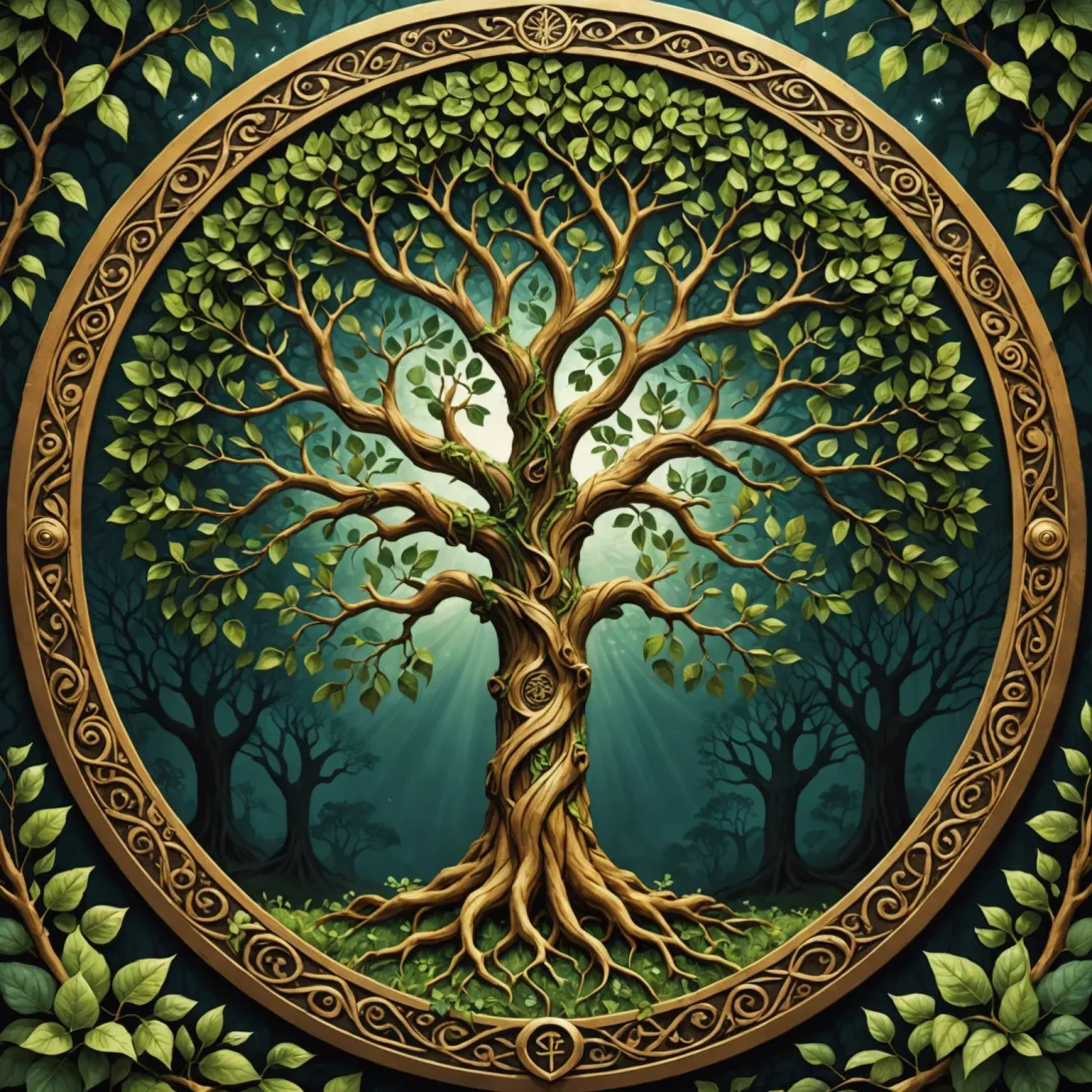 - Духовное измерение: В религиозных контекстах древо часто символизирует путь к просветлению, связь с божественным и циклы рождения и смерти.